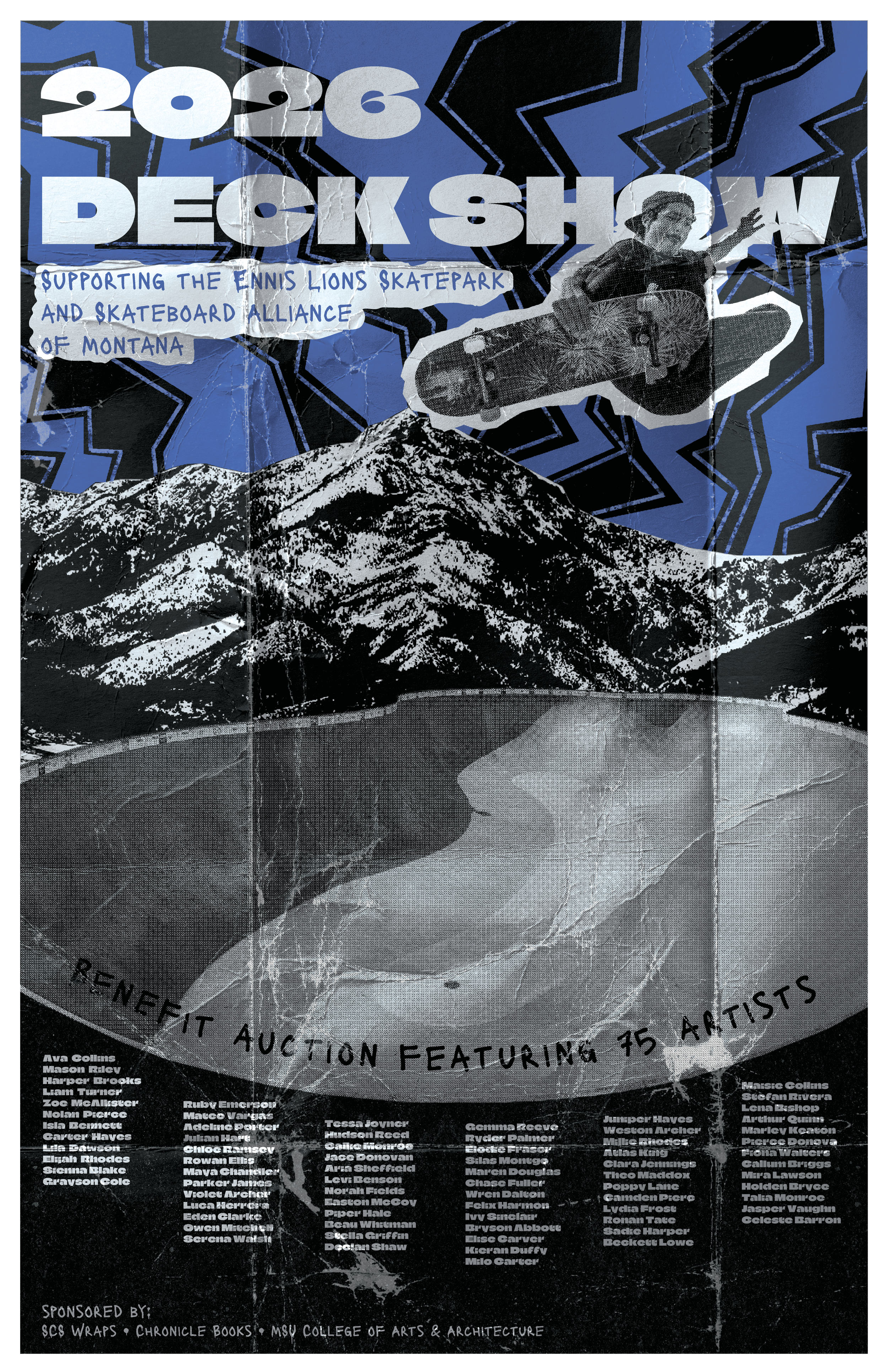 For the poster, I included the Bridger Mountain Range to represent Bozeman, MT. I included dynamic shapes, bold textures, and type to represent the grunge, bold, and energetic qualities of skate culture.